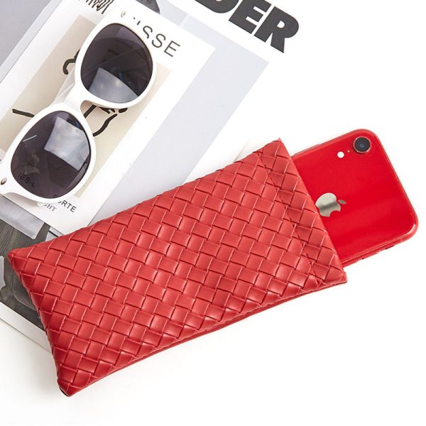 Fashion Weave Pattern Sunglasses Bag PU Leather Glasses Case Pouch Portable Custom Color Phone Storage Bag